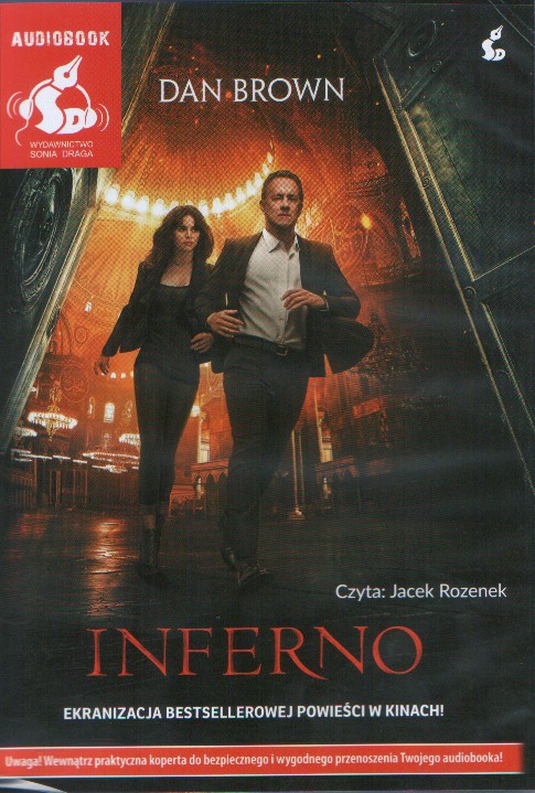 Inferno poznałam w formie audiobooka. Lektorem jest Jacek Rozenek. Trochę bałam się, że jego głos będzie mnie rozpraszać, że nie będzie mi pasować, jednak już po kilku minutach przekonałam się, że obawy były zbędne (chociaż w niektórych momentach, szczególnie na początku słuchania, przypominała mi się inna audiobookowa rola tego aktora, który miał okazję nagrywać kwestie Ricka z The Walking Dead). Rozenek świetnie operuje głosem, interpretując tekst. Poza tym stara się, by najważniejsi bohaterowie mówili w charakterystyczny sposób, co bardzo ułatwia słuchanie.